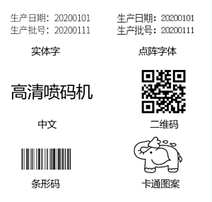 适配器参数:100-240V交流输入 喷印内容:中文、英文、数字、符号、二维码、条形码、图片、日期、计数器、可变数据